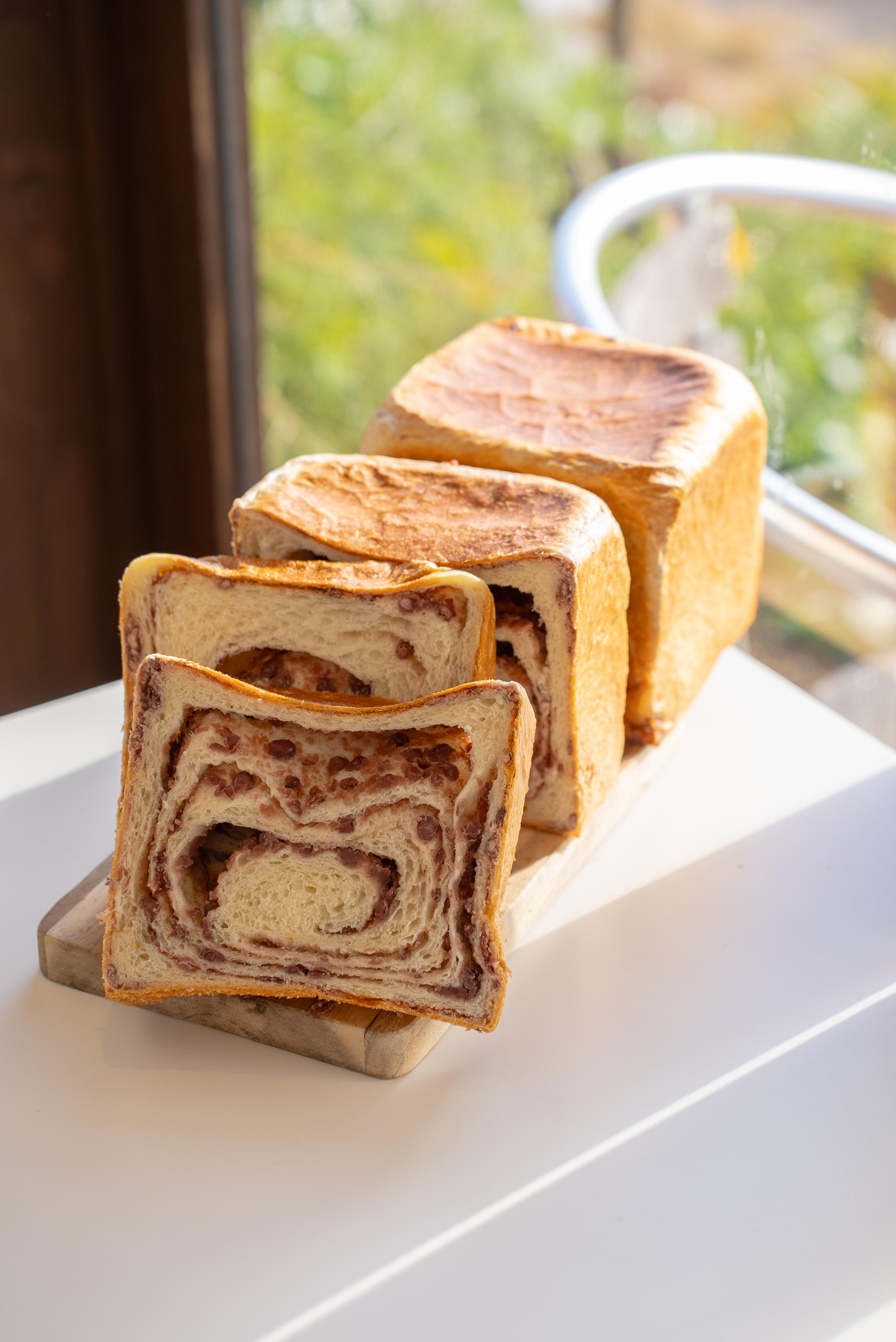 人気の石窯マナレイア食パンに、望月さんの粒あんがたっぷり入っています。
